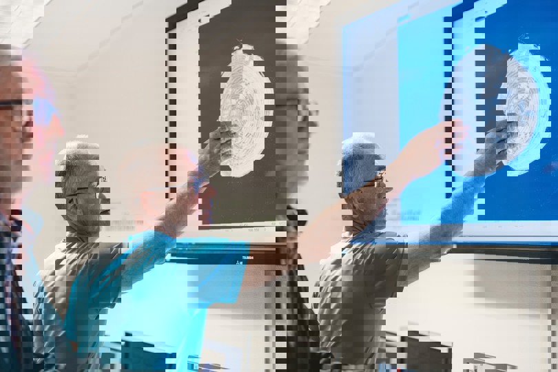 – Stambanken blev ett väldigt bra exempel på hur skog kan se ut – och den används än i dag. Vi tomograferade varje centimeter av varje stock, vilket på den tiden tog flera timmar per stock. I dag gör man det på en och en halv sekund i Kåge och Sävar. Att hantera stora stockar på ett labb var ganska krångligt och tungt – men det var roligt, säger Anders Grönlund och skrattar.