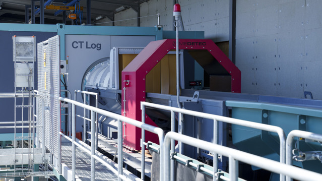 – Redan tidigare fanns det projekt där man följde ett delflöde genom hela produktionen med så kallade RFID-taggar, som står för radio-frequency identification och är en teknik för att läsa information på avstånd från transpondrar och minnen. Ett annat sätt att erhålla sammankopplad data från produktionskedjan är traditionella provsågningar, men dessa innebär ett stort manuellt arbete. Alla stockar ska märkas och sedan får man hålla koll på i vilken ordning stockarna kommer och handskriva nummer på planken i råsorteringen i justerverket. Men nu när vi har vår datortomograf, alltså CT-scanner, blir arbetet betydligt enklare på en betydligt större del av flödet och kräver inte lika mycket administration, säger Jens Flodin.