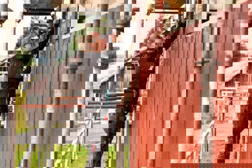- Vi har valt att sätta likadan panel som det var tidigare på huset. Det ska inte se nytt ut, men fräscht. Vi tog och ett färgprov på förra panelen för att få samma kulört på det nya, avslutar Sebastian.