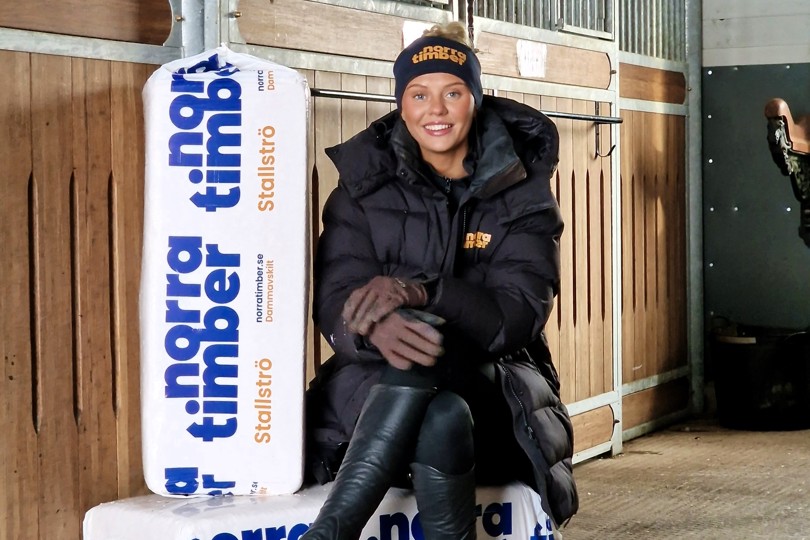 Wilma, som själv är en aktiv hästentusiast och tävlar i hoppning med sin egen häst, förstår vikten av att använda produkter som är skonsamma mot både djur och miljö. Norra Timber stallströ är nämligen särskilt lämpligt för känsliga hästar, fjäderfän eller kliniker med högt ställda renlighetskrav. Den slutna och väl kontrollerade produktionsprocessen säkerställer att torr råvara utan mögel används, samtidigt som avsaknaden av damm i balarna skapar en mjuk och luftig bädd, med låg risk för svamp- och mögelangrepp vid användandet. Det gör att produkten ger en extra bra miljö för både djur och människa.