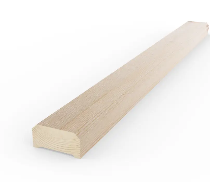 Obehandlad lockläkt av senvuxen norrländska granråvaran med täta årsringar. En ytterpanelbräda med en finsågad sida och tre hyvlade sidor.