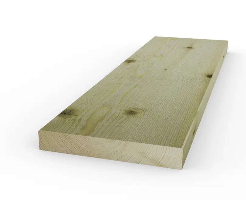 Ytterpanelbräda av den senvuxna norrländska fururåvaran med täta årsringar för snygg och hållbar panel, impregnerad för ytterligare motståndskraft.